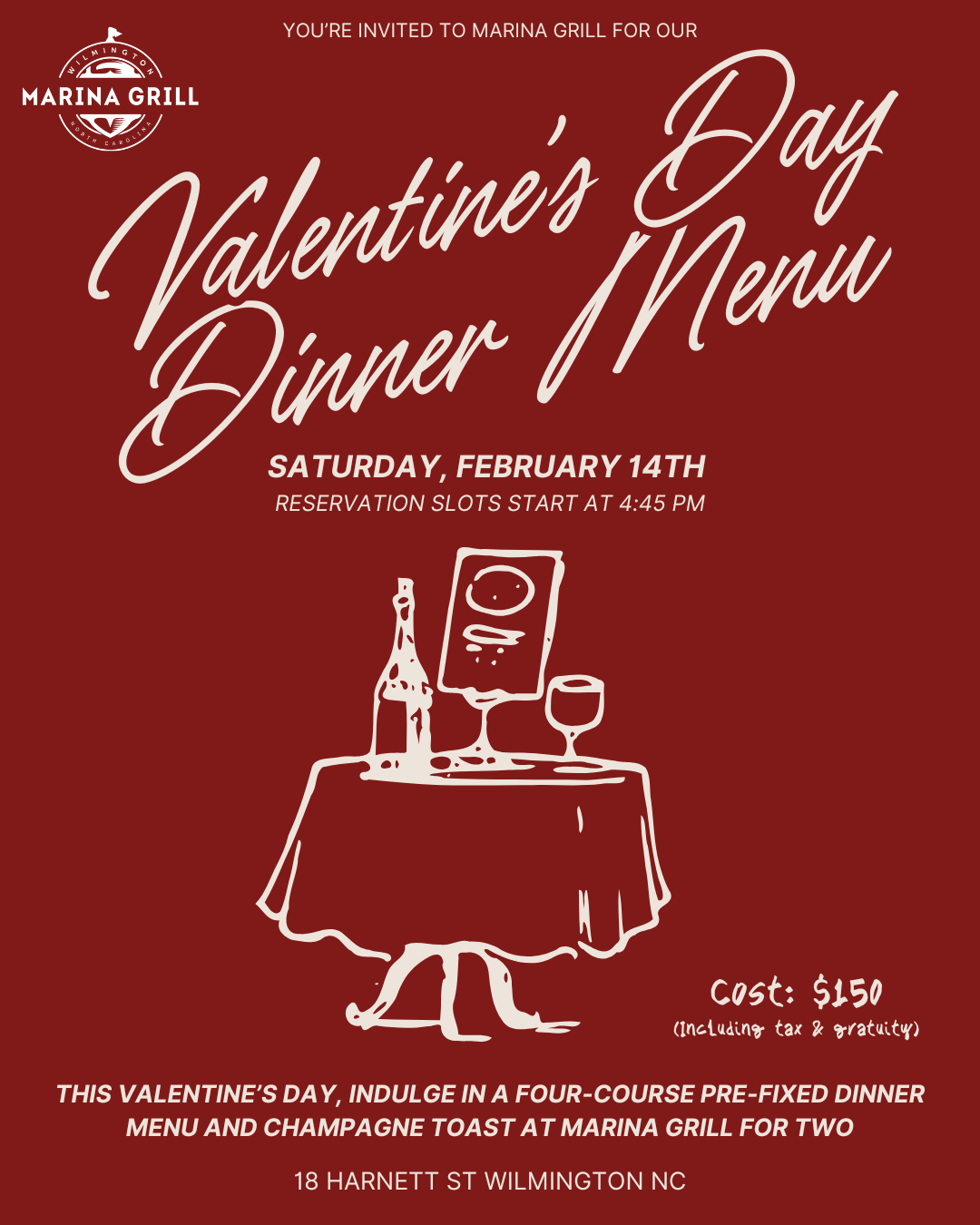 4-Course Valentine’s Day Dinner at Marina Grill ❤️